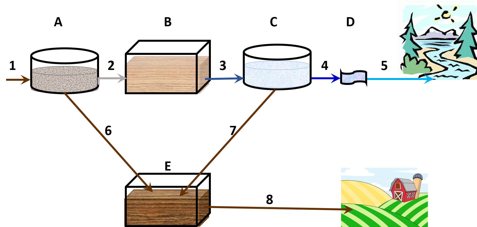The most treatment is happening in Step B. Bugs are eating the poop from the wastewater thereby “cleaning” the water. I can list maybe a dozen different technologies that we use to accomplish this that involve concentrating microorganisms (bacteria and/or algae) and giving them the ideal amount of food (wastewater), the right amount of oxygen (a lot = aerobic, a little = anoxic, almost none = anaerobic; the bacteria that thrive in each different environment are specialists at ingesting specific nutrients and/or organic matter), and the right environment (temperature, pH…) to allow them to reproduce and form dense colonies that we can separate from the treatment stream in Step C.