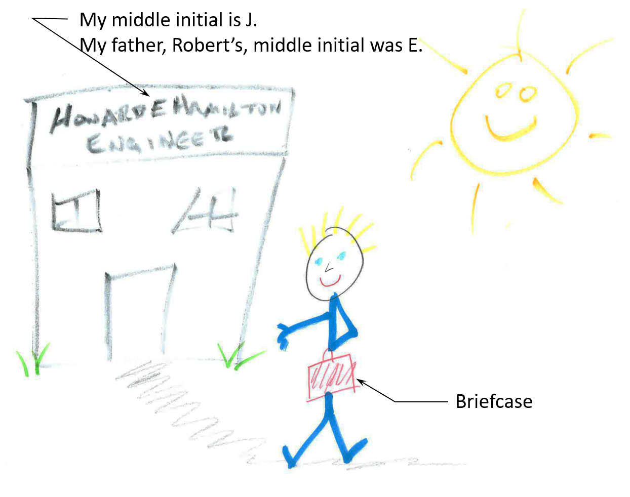 In first grade we were asked to draw a picture of what we wanted to be when we grew up. It was 1969, the height of the space race and the first moon landing. Many of the students drew rocket ships and astronauts. There were firemen, policemen, cowboys, doctors, and nurses, always favorites. There were happy apple-eating teachers drawn by the suck-ups (that’s probably what Kristen drew). There had been three Super Bowls, so there were boys who wanted to be football stars. Vietnam was raging and some of the kids had brothers in the armed forces, so there were soldiers, and sailors and pilots. What did 6 year-old Howie draw? I remember it because it became family lore. I also found it when we were cleaning out the basement 5 ½ years ago, Mom had saved it in the back of a filing cabinet. The artwork was even worse than I remembered, and it was yellow, crumbling, faded, and barely discernable - so I pitched it. Below is a 30 second sketch from my memory of that picture…