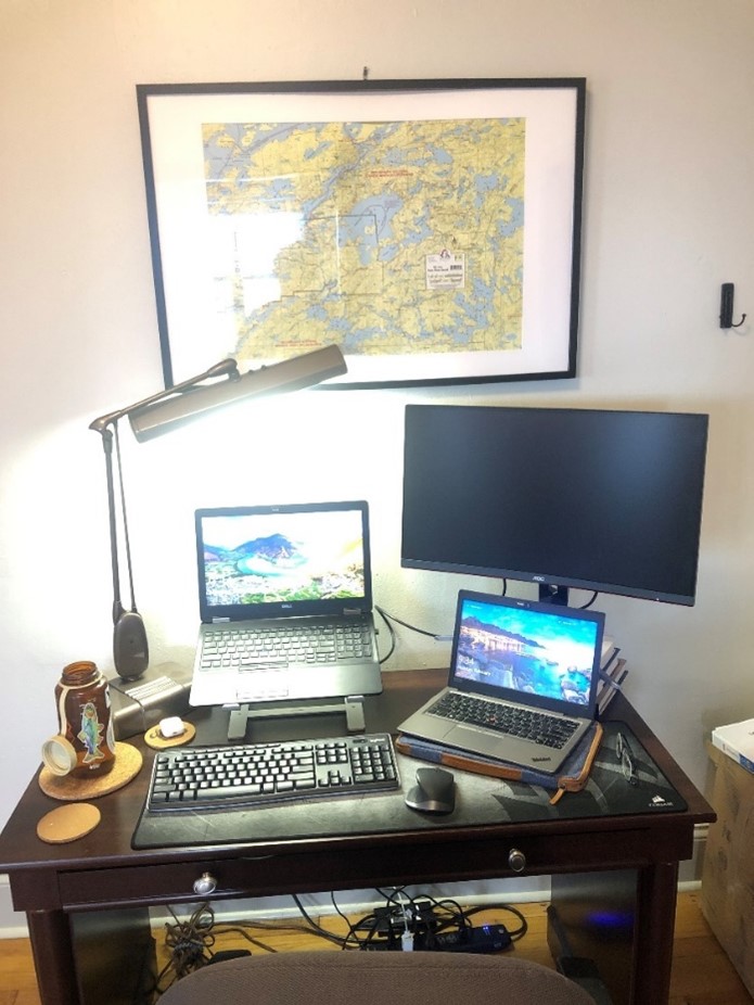 And speaking of Howard, he was not to be outdone on the computer set-up front – he sent this picture of his own computer workstation design that prevents a sore back/shoulder/neck or general ache of the day: