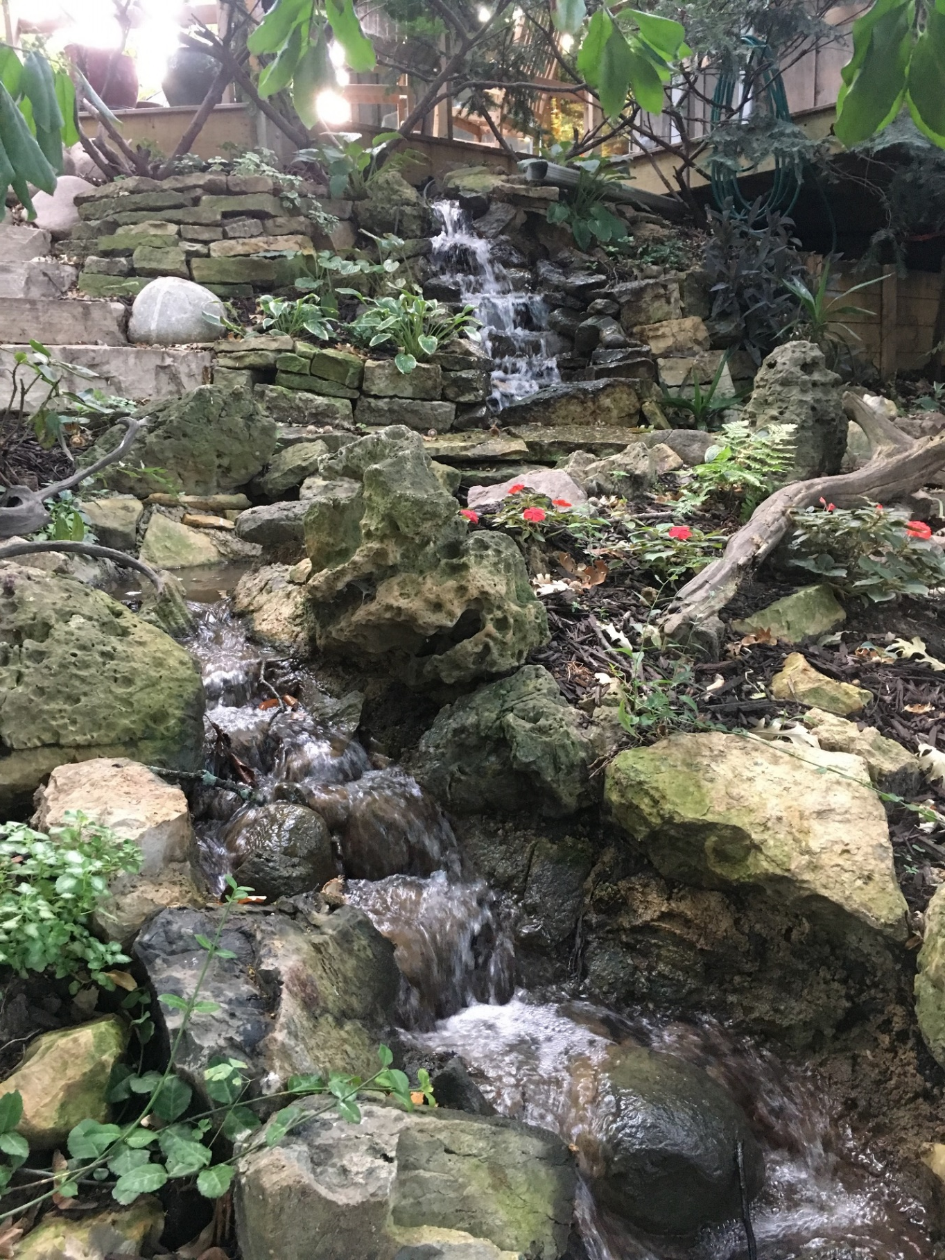 For most of my life there had been a “Rock Garden” on the hill along the northwest side of the house. When I was young, every spring Mom and I would plant impatiens into the rock-lined planters in a flagstone wall and between the naturally eroded karstic limestone boulders that Grandma Ham had brought from Texas decades earlier. In the early 1900’s, Grandma would go on family drives into the Texas hills to collect interesting boulders. When the family moved to Joliet in the 1920’s, she brought many of the rocks with her, and when she would return to Texas on visits, she would bring more back to her rock garden on Cowles Ave. Eventually she had her goldfish pond filled due to repeated leaks (the apples don’t fall far from the trees in my family) and many of the boulders found their way to my parent’s rock garden. Most are still there today.