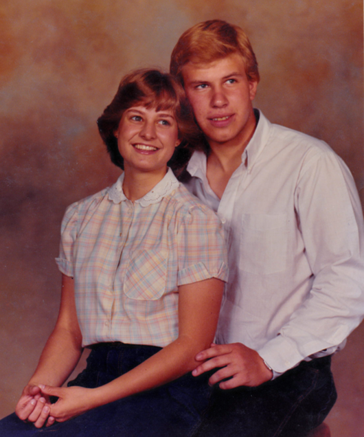 As new freshmen engineering students at UIUC in the fall of 1981, Kristen and I were inseparable friends, but she would not go on a “date.” I devised numerous successful opportunities to spend time together, but most times it was in a group, and any feeble attempts at affection were quickly rebuked. Too young and sure of myself to be discouraged, I developed the ultimate “non-date.” We had both been good students and leaders in multiple clubs and activities at Joliet West High School (West), which is 4,200 yards from our home in the woods. So, I was sure that our Alma-Mater would receive us with open arms if we came to the Homecoming dance in October. I called the school, bought the dance tickets through my younger sister Helen who was a senior at West, and “suggested” to Kristen that we could go to the dance together as “friends”. She agreed!!
