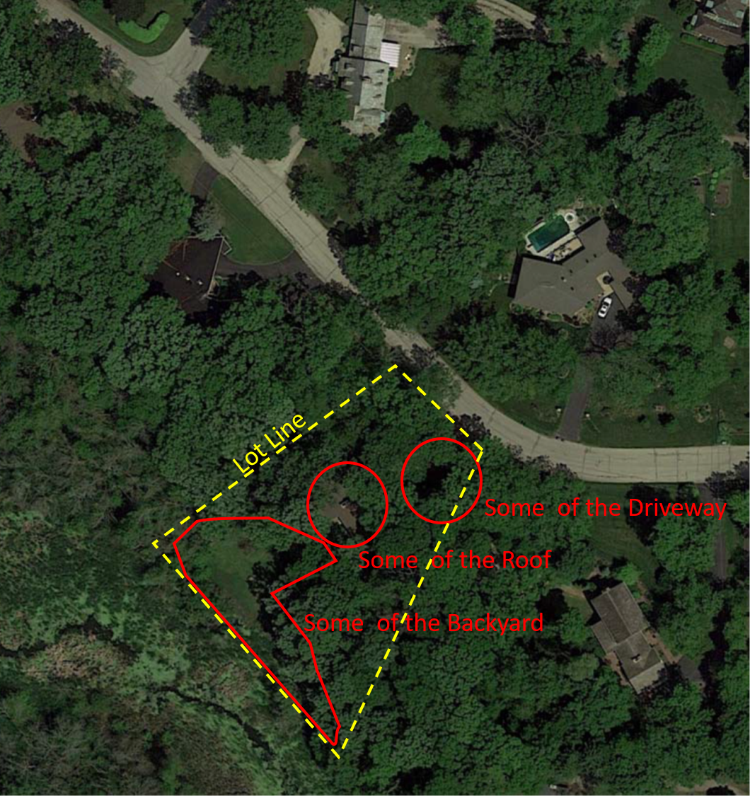 Our property is defined by the massive oak trees and as the following Google Earth image shows, there’s really not much else to see from the air (or the ground either):