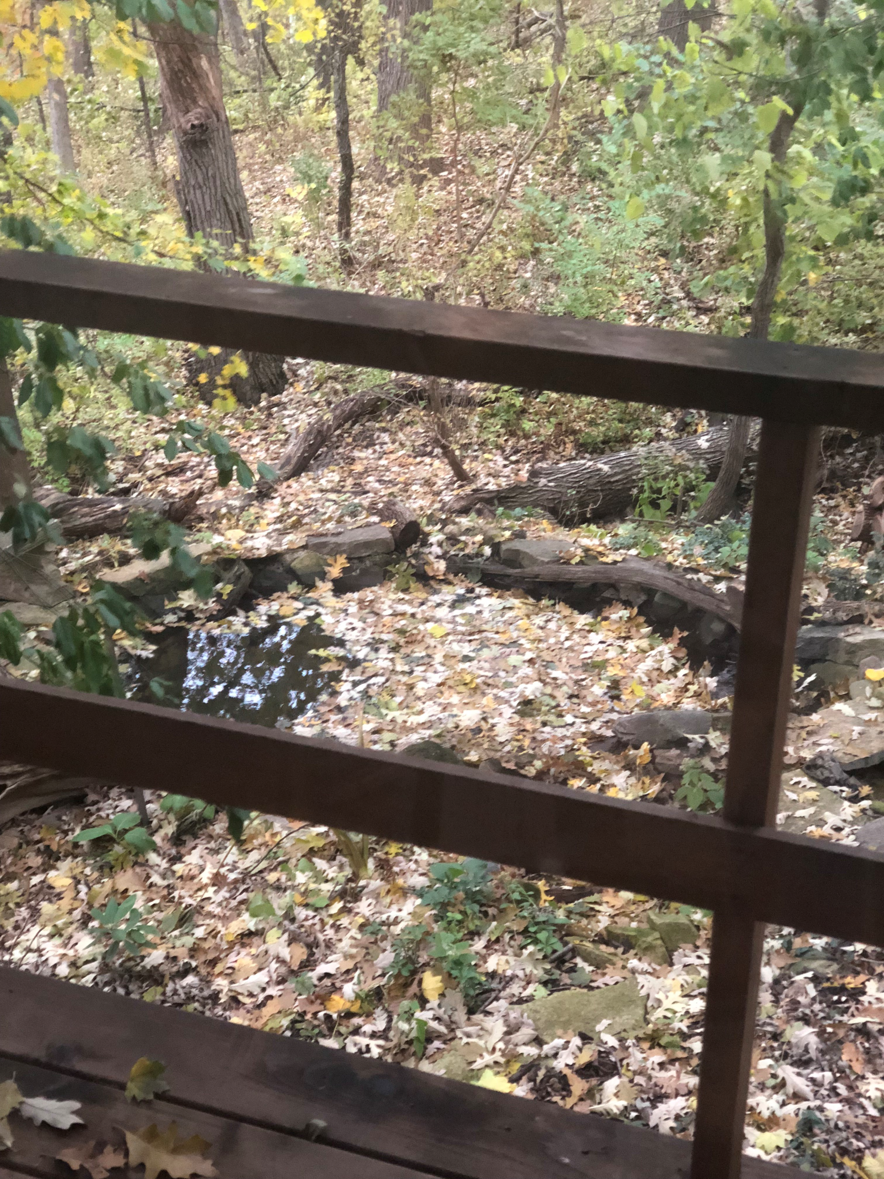 In the summer the trees keep us cool by providing shade (too much shade to grow anything under them but dust) and in the winter after they have dropped their leaves they allow the sun to warm us. But spring, summer and fall I curse them more than I praise them. It’s currently our 3rd fall in the woods. This time of year, I agree with my business friend and I think about cutting those trees down every damned day! My next blog will be devoted to my annual calendar of tree cursing. As a teaser here is what my pond looked like this past weekend: