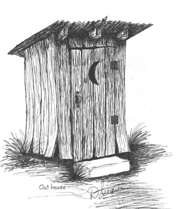 To understand an outhouse, simply take my septic tank sketch, replace the concrete tank with a dirt hole, get rid of the pipes and leach field, and put a house with a place to sit over the top of the hole. Waste is input to the system through a hole in the seat, the bacteria do their work and the liquids soak into the ground. When the sludge and scum build-up and the hole gets full, dig a new hole, put the dirt from the new hole into the old hole and move the old house over the new hole.
