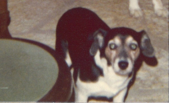 In 1970-ish when my brother Bruce and his wife Marsha lived in Savoy or Urbana (not sure which apartment was first), they got a dog. A 30-pound, black and white “beagle” (in retrospect she was probably a terrier-mix, but Bruce always called her a beagle). Her name was “Stinky.” They soon added a son Robbie to the family, moved to Joliet, rented a house on Cochrane Ave. and daughter Tricia was born. With two young-uns to watch, Stinky would take advantage of occasionally inattentive parents. She would enjoy trashcan snacks and forays into the neighborhood more often than she probably should have. One Saturday afternoon Bruce opened the back door and found Stinky having “relations” with what he described as “the ugliest, mangiest, animal I have EVER seen. I’m not even sure it was dog. It could have been a large snub-nosed rat crossed with a dirty mop.” For future reference I will call it “Mop.” Not long after that, Stinky had a litter. Robbie and Tricia named the puppies, and the ones I can remember were: