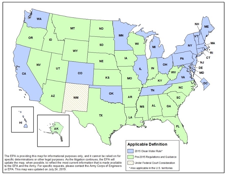 This final rule (re-codifying the original) will become effective on December 23, 2019. Stay tuned for “Step Two” when EPA and ACOE attempt to modifying their definition to “waters of the United States”.